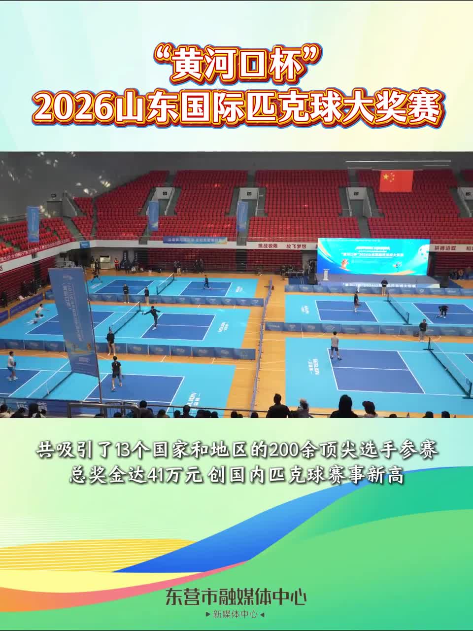 3月21日 “黄河口杯” 2026山东国际匹克球大奖赛在东营市奥体中心激情开赛